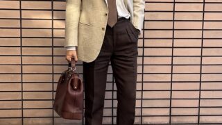 リネンスーツ×ラコステは、夏限定の格好なのでしょうか。季節感的には分かりませんが、機能的には秋に最適な格好だと思います。