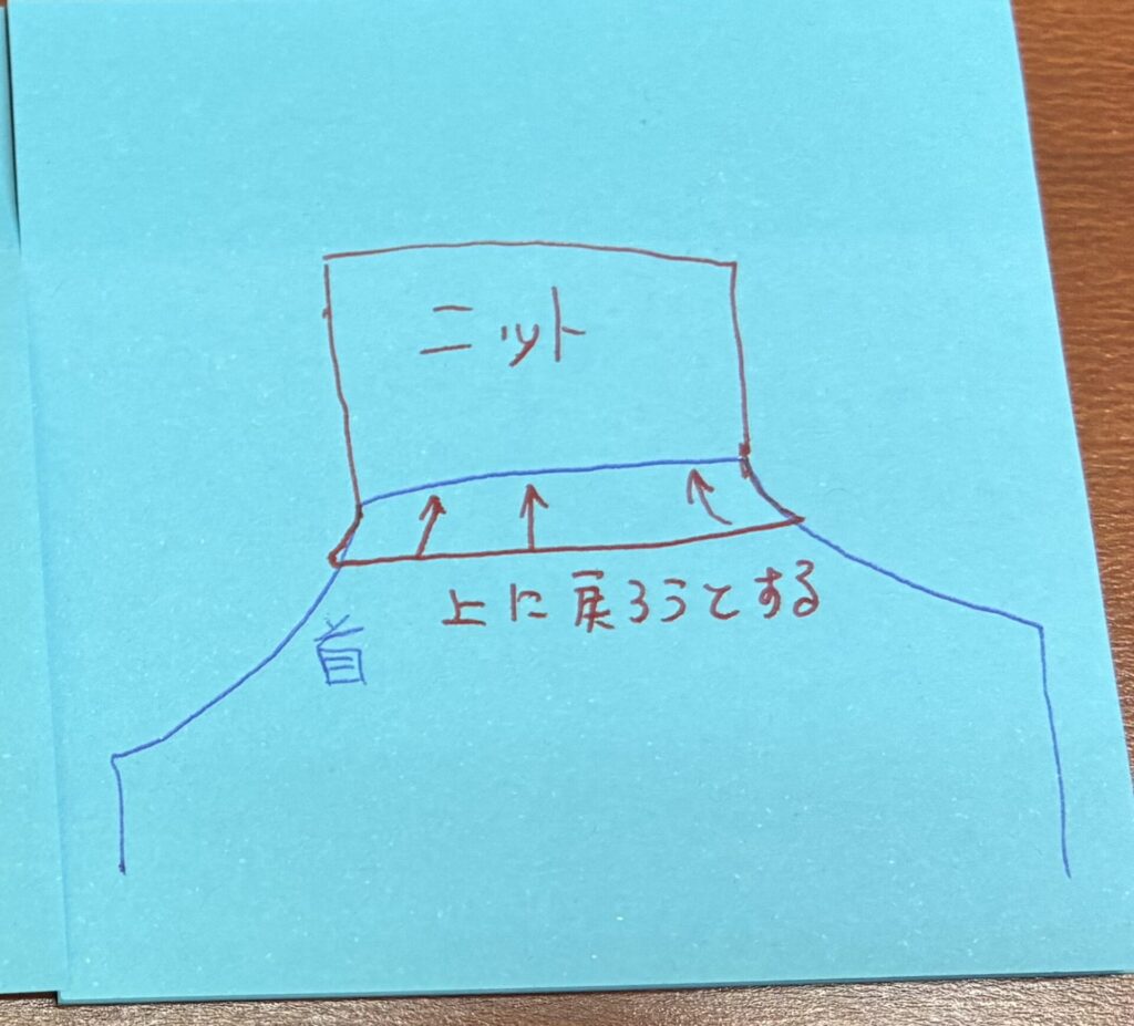 首のリブ部分の生地が二重には見えなくなるので、すっきりします。