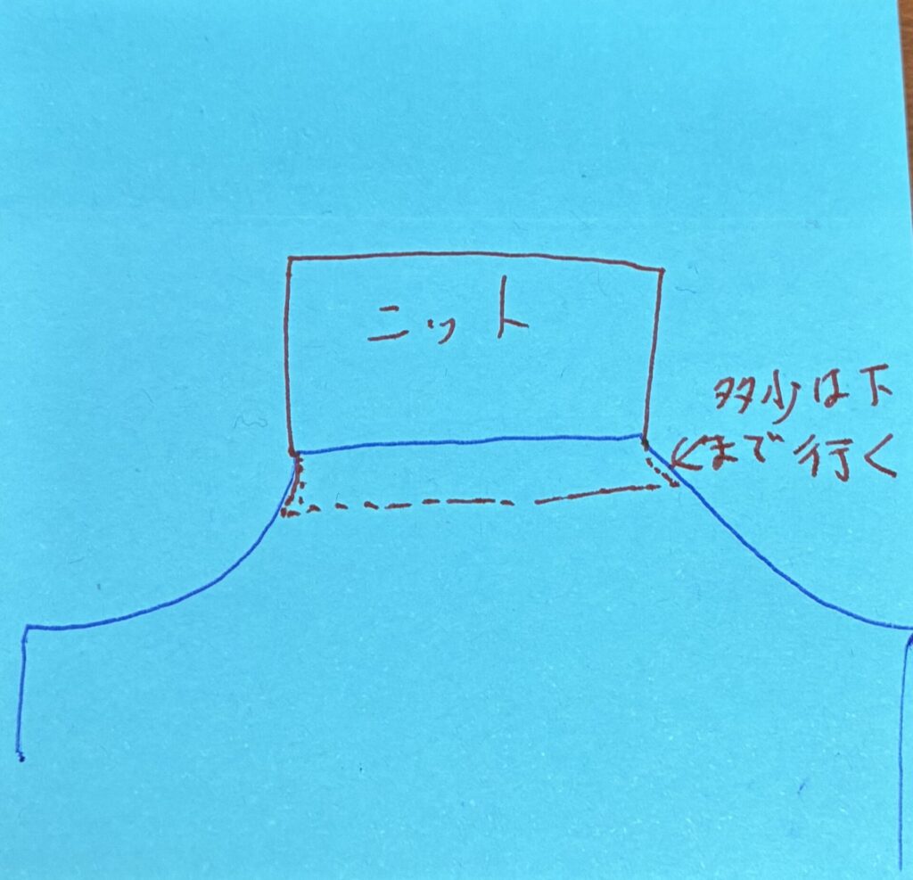 首の箇所を、リブ以外の部分と同じ薄さで作ってしまうと、首部分がすぐにヨレヨレになってしまうから、分厚めのリブにしているのだと思います。
