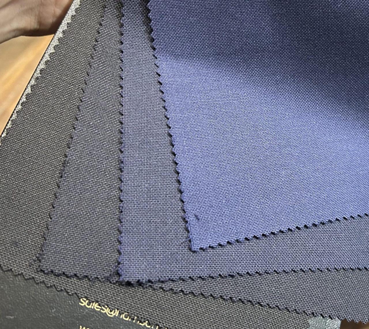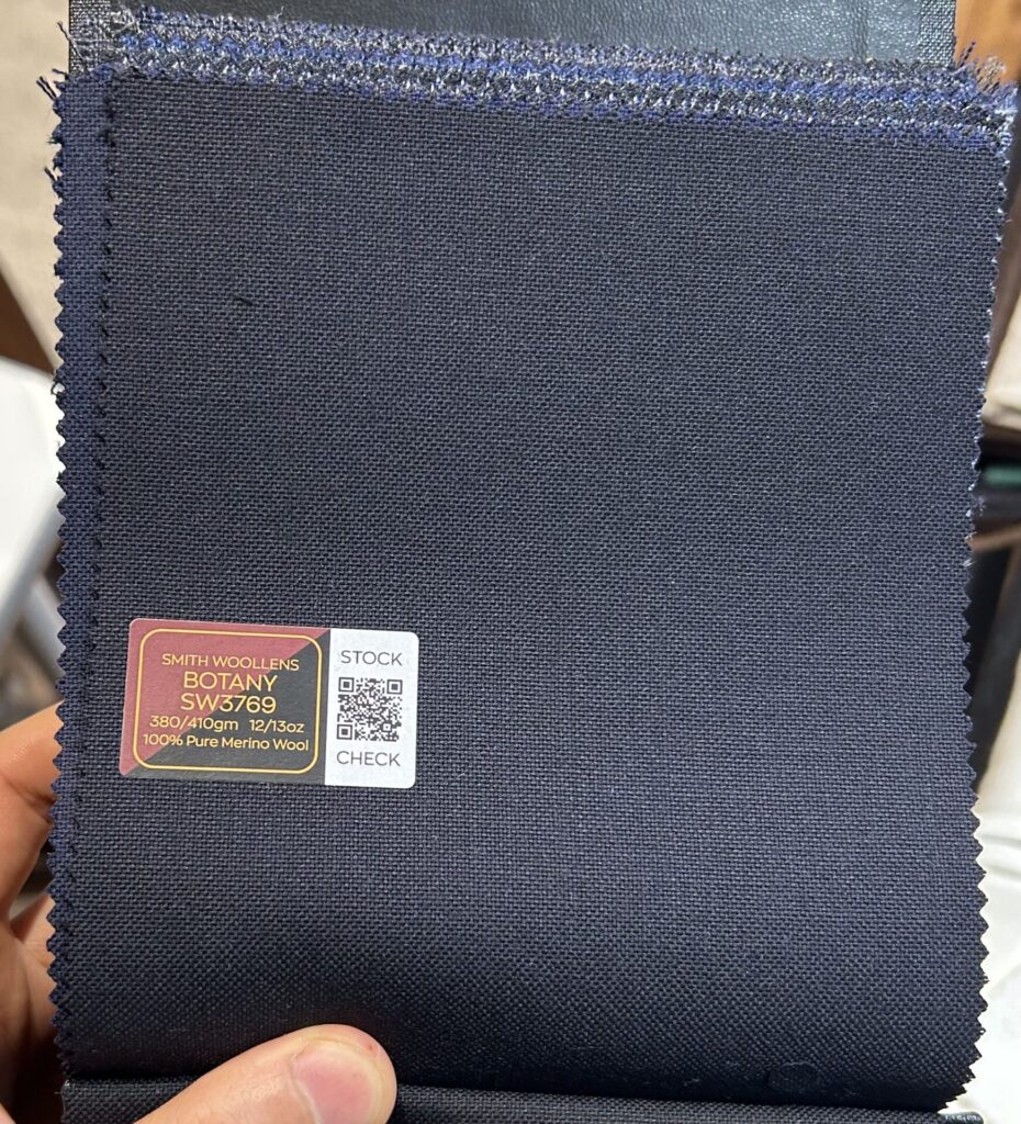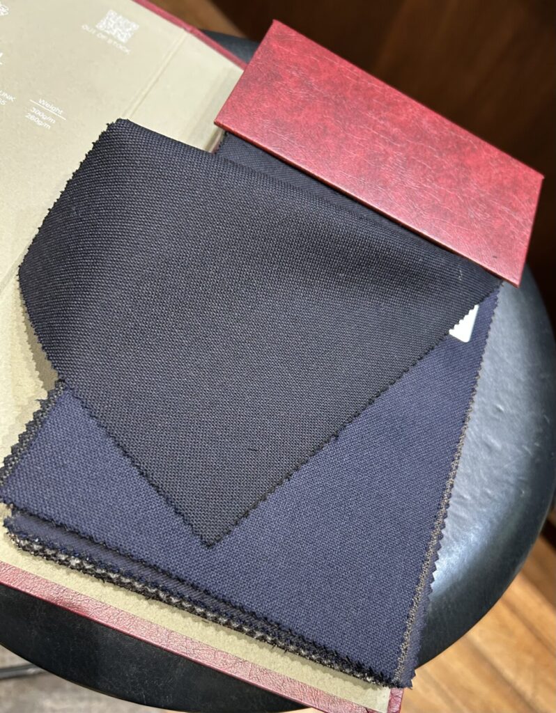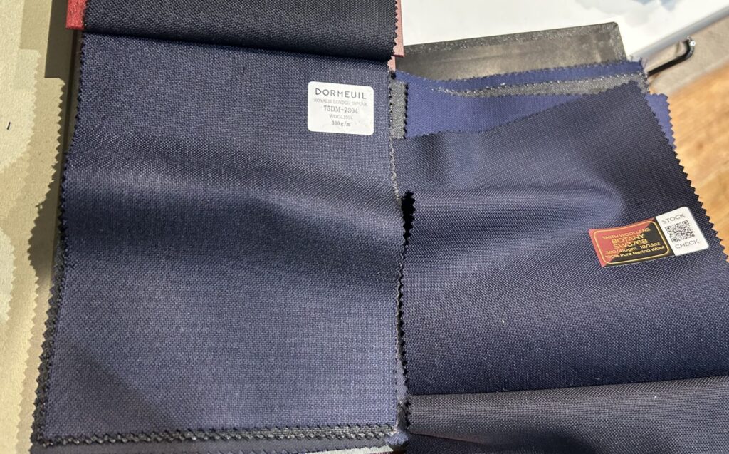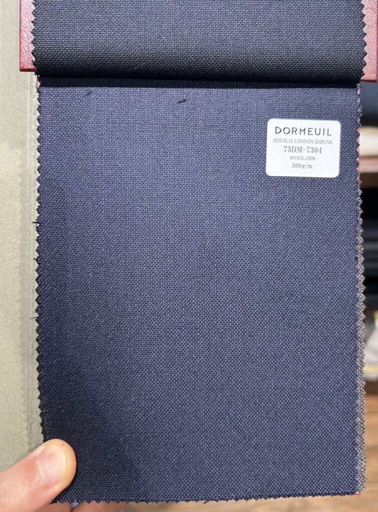 まずはDORMEUILドーメルの300gの生地。ダークネイビーとネイビー2色あります。