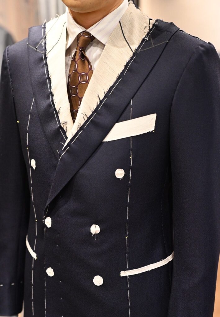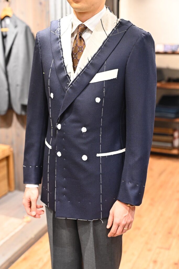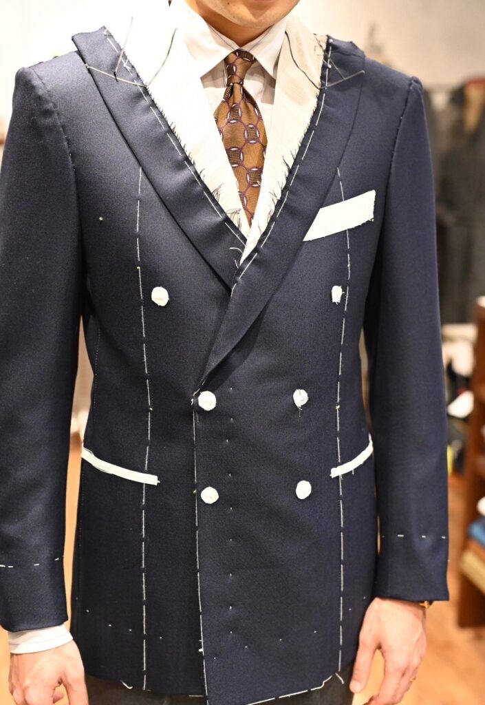 DORSOでダブルのオーダーは初めてで、仮縫い付きの方がより理想的な形に近づくと思ったからです。