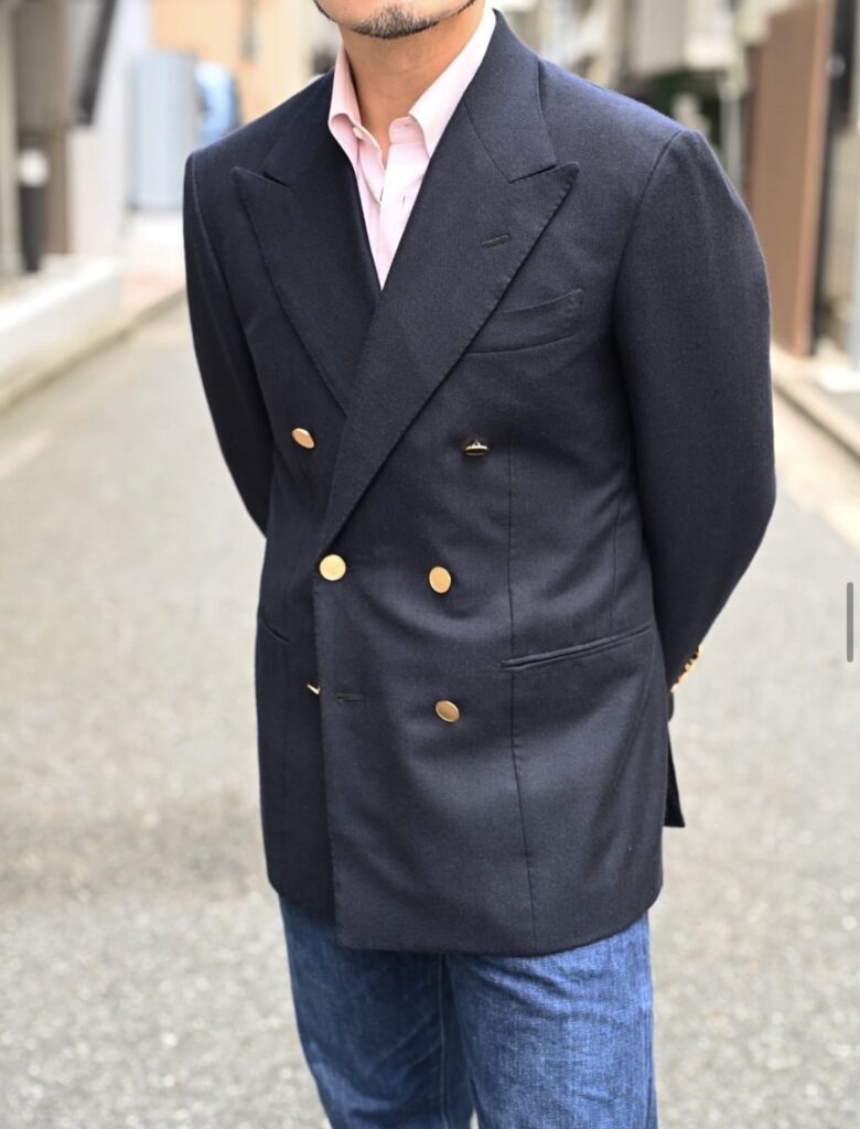 ネイビーのジャケットは2着ともダブルなので、持っていないシングルが良い気もしましたが、今回もダブルにしました。