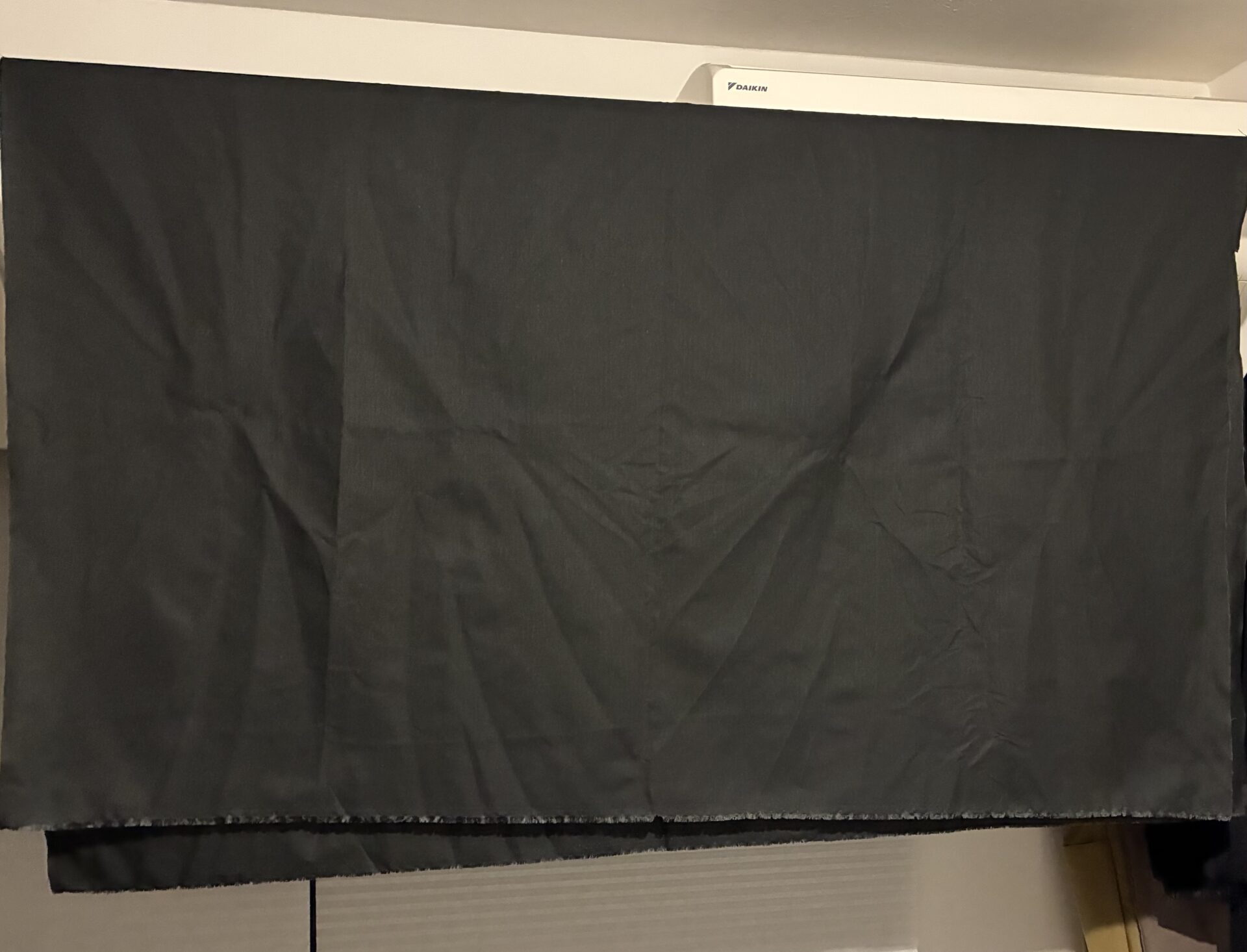 ちなみに、私の自宅では部屋に長い突っ張り棒を設置しているので広げて干すことが出来ましたが、突っ張り棒が無い場合は、テーブルの上に広げたりしても良いと思います。