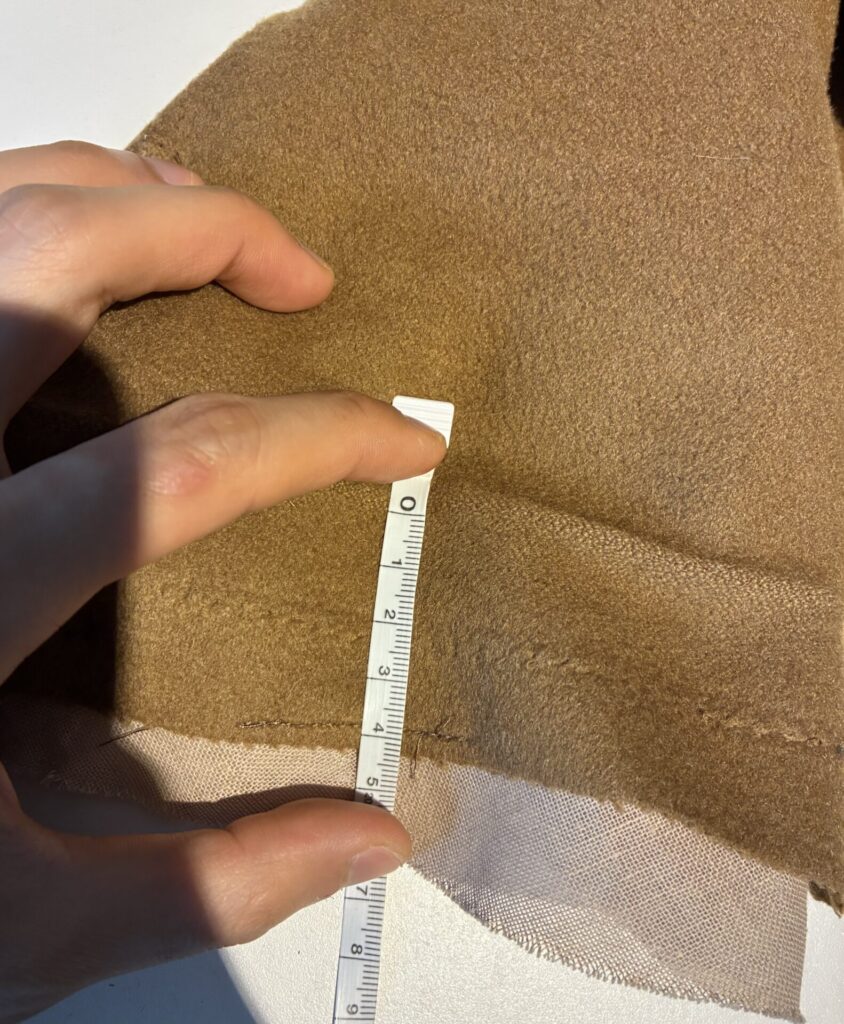 加えて、生地がしっかりと分厚く、私の感覚では500g前後の重さがある気がします。薄手の上品なカシミア生地とは違った感じです。