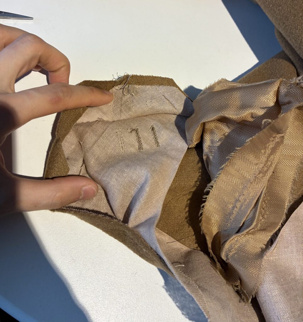 袖丈は、ボタンホールは本切羽ではないし、ミシンもあるので、自分で出せるかもしれないと思い、開いてみました。