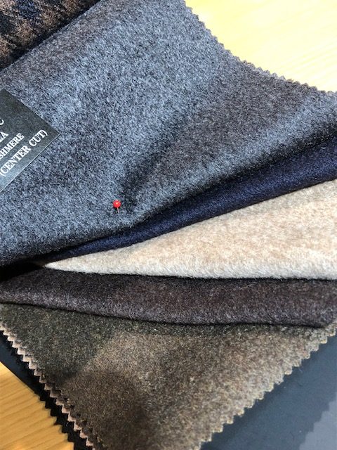 今まで私が見たことがあるカシミヤ100%の生地は、PIACENZA社のものなどで、光沢があり、ふんわりとろとろ、という感じでした。