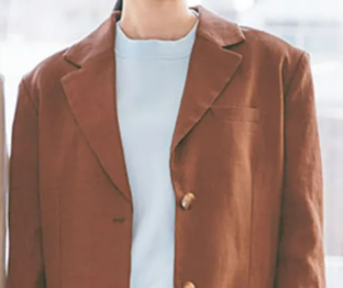 その反対の、肩パッドゼロの柔らかいジャケットで、なで肩にピッタリ合いそうな丸い肩のジャケットは、首~肩の傾斜角度が急になります。