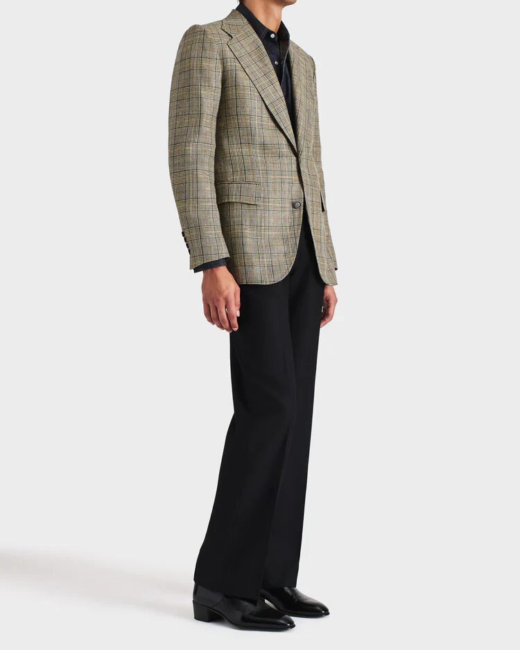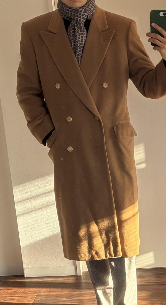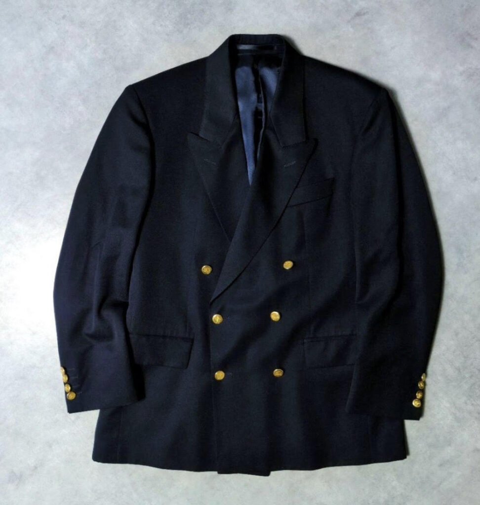 肩パッドのせいで、やや古臭いように見えるかもしれませんが、丸いナチュラルショルダーばかりの今の世の中で、あえて肩が構築的なジャケットを着るのも格好良いとも考えられます。