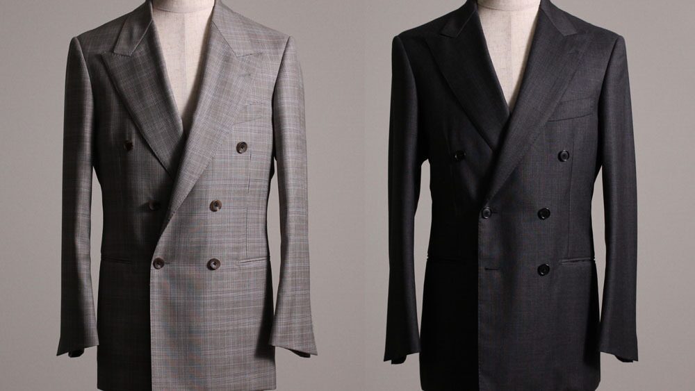 また、同じ3つボタン上2つ掛けでも、元々のVゾーンが狭いものと、比較的広いものがあり、狭いものは、お直しによって広くすることで、一般的な3つボタン段返りに近い印象にすることが出来ますが(上の写真の黒のスエードジャケットの例)、