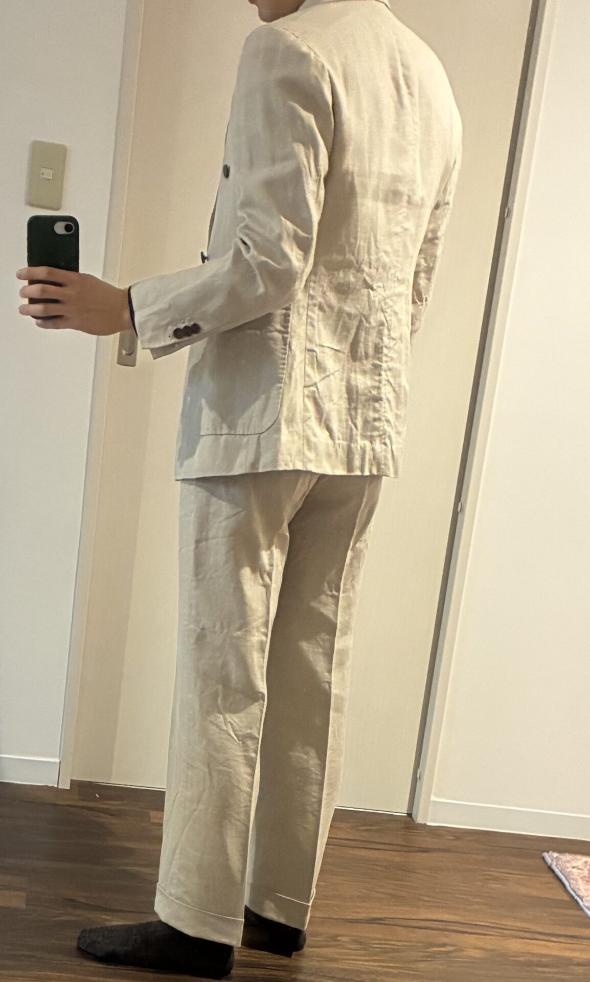 このリネンスーツを、自宅の洗濯機で水洗いしたところ、着丈、袖丈、パンツの丈、丈と呼ぶ部分全ての長さが3㎝も縮んでしまいました。