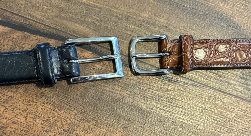 反対に、ウエスタンベルトのようなカジュアルベルトをスーツに付けるのもおかしいです。