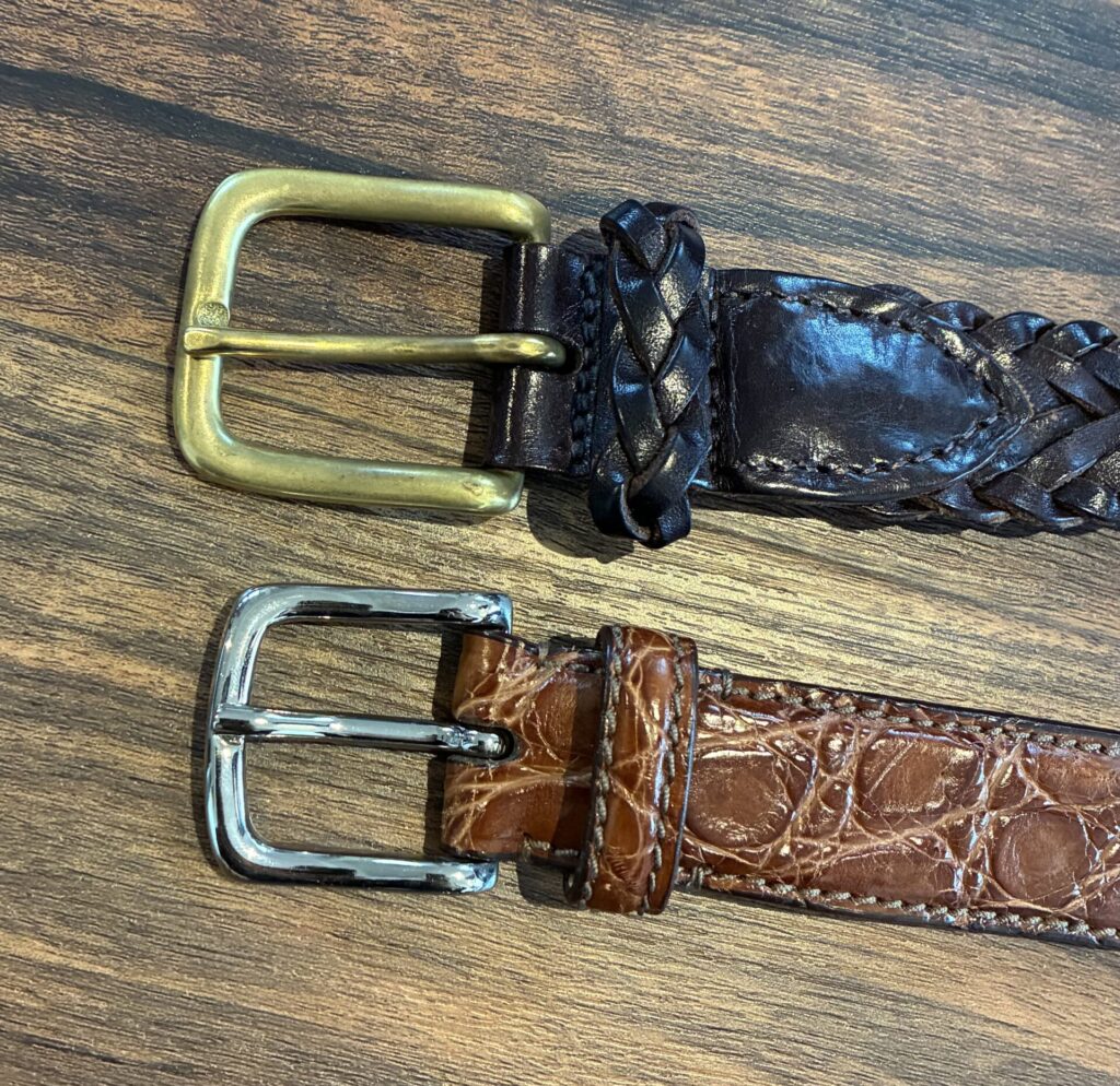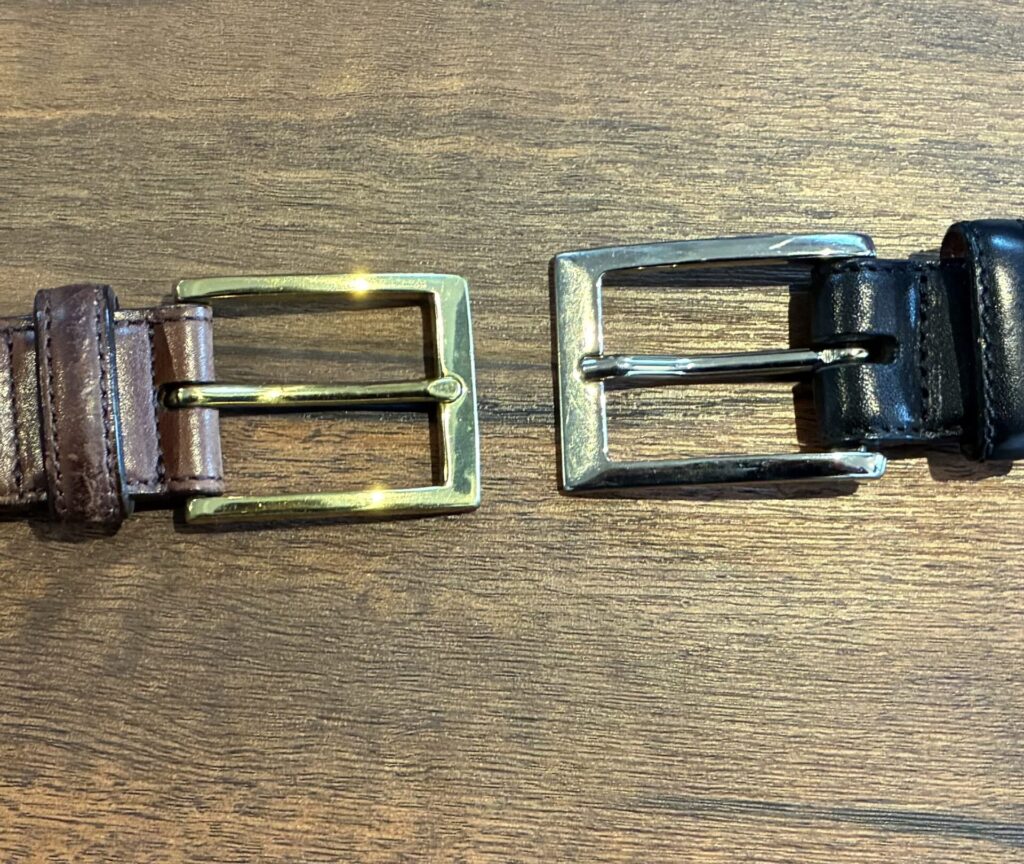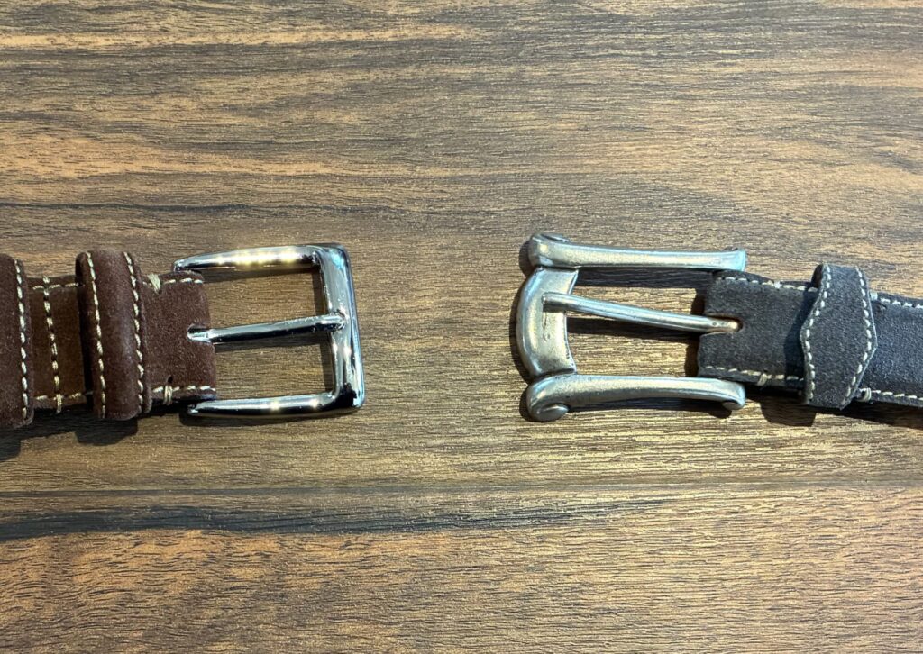 ドレスとカジュアル、それぞれ別で、ブラックとブラウン、表革とスエード、バックルも角張り系と丸みを帯びた系、など沢山ベルトを持って使い分けるのが理想ですが、なるべく汎用性が高いデザインのバックルで、多くの服装に使いまわせると嬉しいですよね。