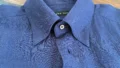 通常、ボタン同士の間隔は、第一~第二ボタンの間隔は6-7センチ程度(ボタンダウンシャツなどはもっと広い)、それ以降のボタン間隔は9センチ前後で、第一~第二ボタン間だけやや狭くなっています。