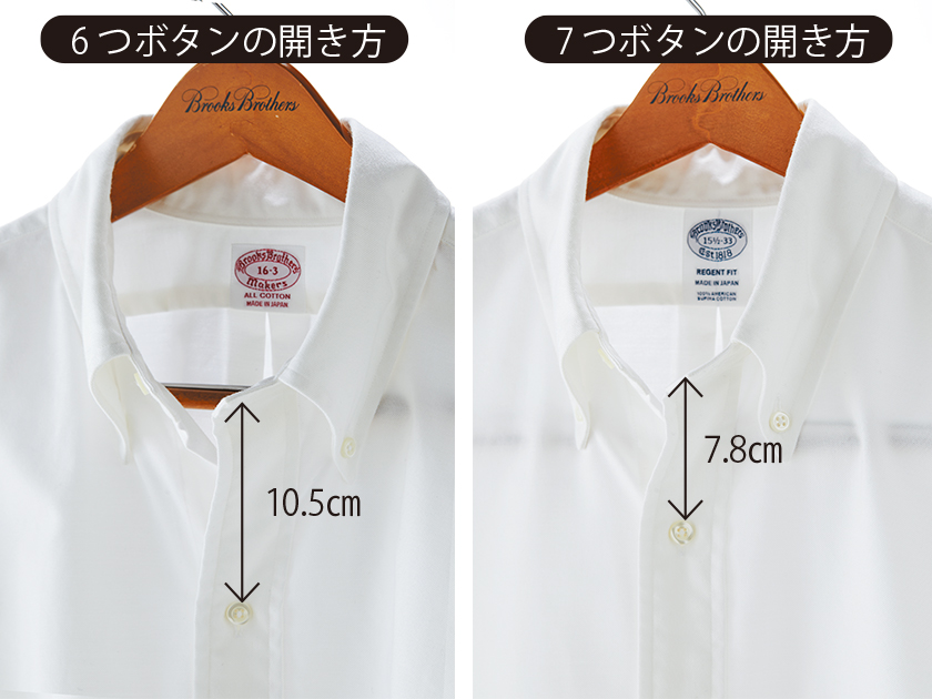 ブルックスブラザーズのボタンダウンシャツは、近年の物は7つボタンなのに対し、ヴィンテージのものは6つボタンらしいです。
