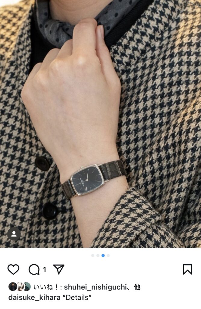 同じマットブラックの文字盤は、ユナイテッドアローズ木原さんの他にも、私が格好良いと思って参考にさせてもらってる、他のファッション系の有名人の方も選ばれています。